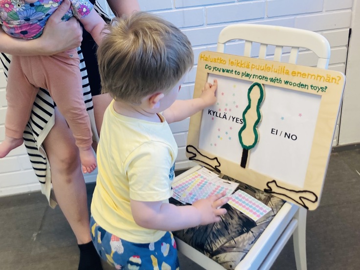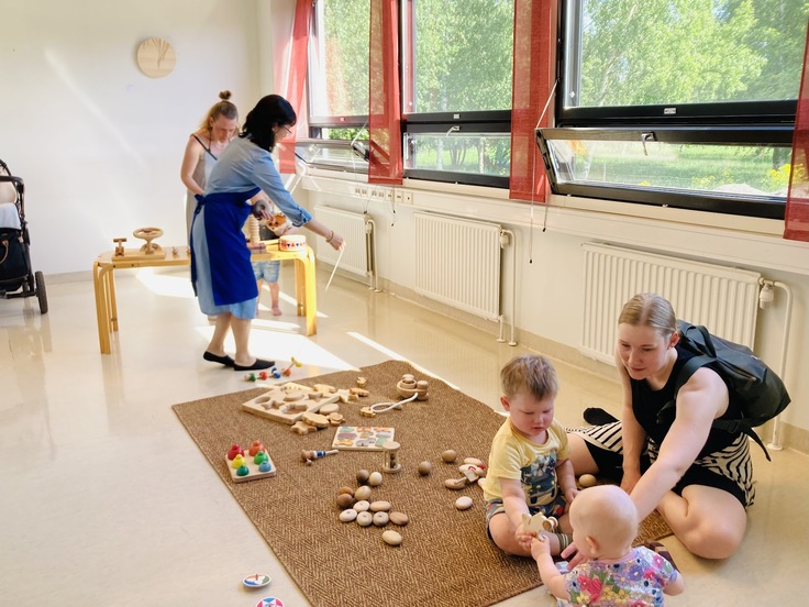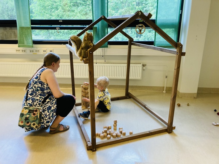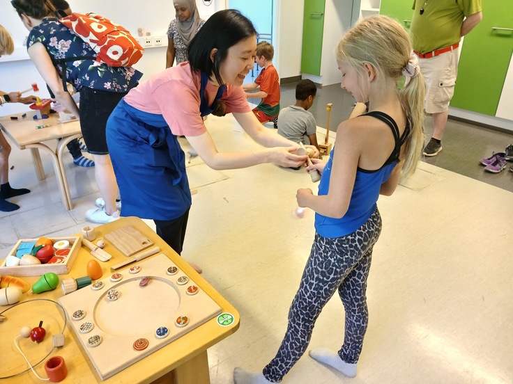5月中旬には、Touch Woodメンバーの1人もお友達と子どもたちと一緒にヘルシンキ方面から駆けつけてくれました。みんなでゆっくり、全部のおもちゃで遊んでくれました。一緒に遊ぶ人とのコミュニケーションによって遊び方が変わるのも、遊びのおもしろいところだと思います。