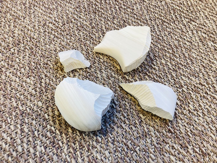 「ROCKS」というこちらの作品は、壊れやすい部分もあるので、来館者が一組の時にだけ特別にお見せしています。アート作品は触ってはいけないと思っていたのですが、彼女は作品の触った感触も見る人に感じてもらいたいという思いがあり、細心の注意を払って猫や犬を撫でるように大切にお見せしています。
