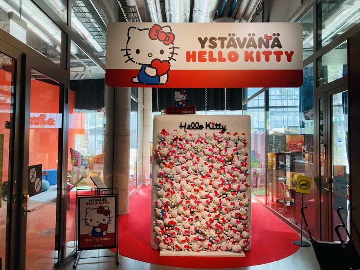 館内の方を少し見せていただくと、今はちょうど「ハローキティ」の展示をされていました。日本のポップカルチャーはフィンランドでも愛されていて、とても嬉しいですね。私の子ども時代にもいつもキティがいました。木のおもちゃもキティみたいに、世界各地でファンになってくれる人が増えて、それを通して人が楽しく関わっていけるようになったら私も嬉しいです。