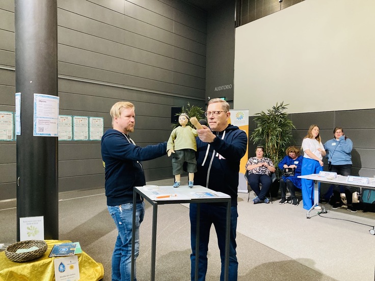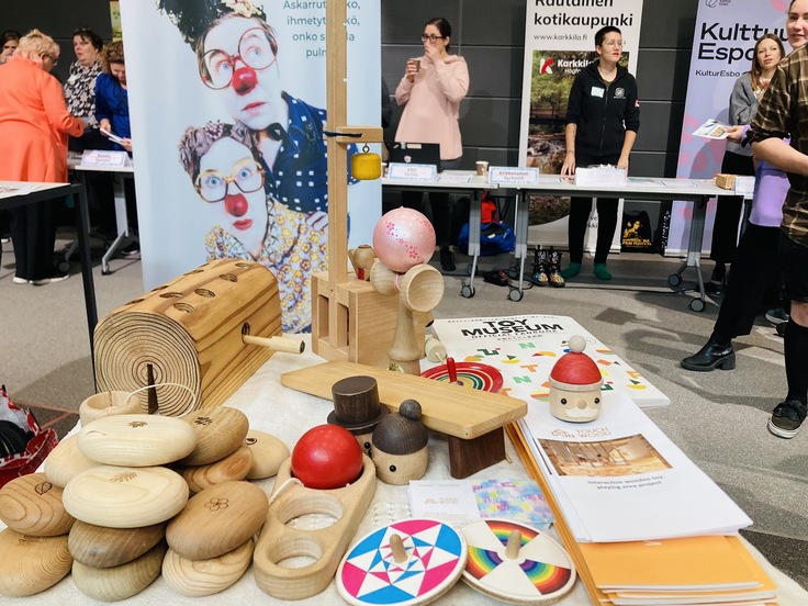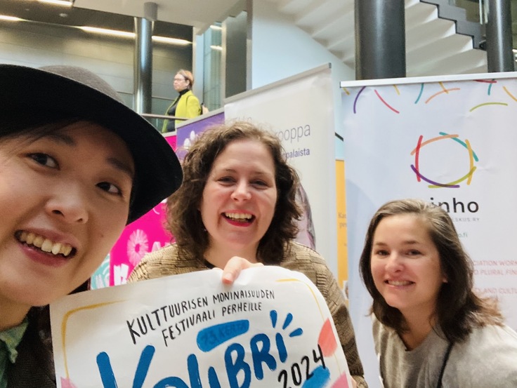 受付のそばで早速、いつもKolibri Festivaaliでお世話になっている「ninho ry」のみなさんにお会いできました!彼女たちの協会は、すでに10年以上フィンランドで多文化共生のための文化活動を続けて来られていて、私たちにとって大先輩です。今週土曜日のKolibri Festivaaliでは、私たちもプログラムのひとつとして、木のおもちゃでめいっぱい遊んでもらえる場所を一緒につくります。