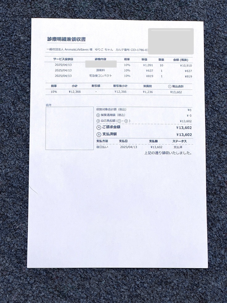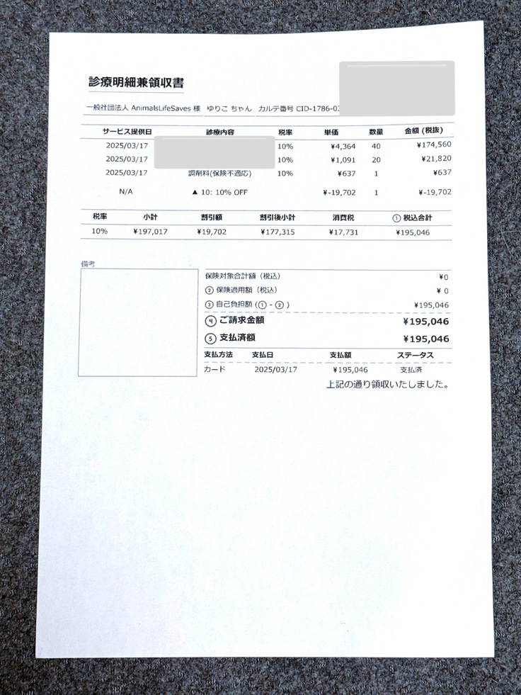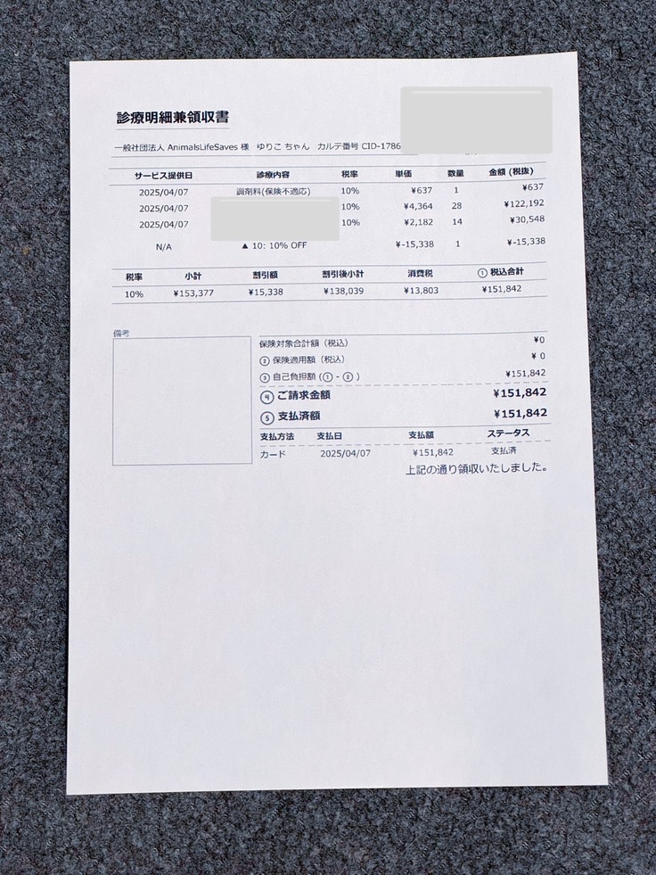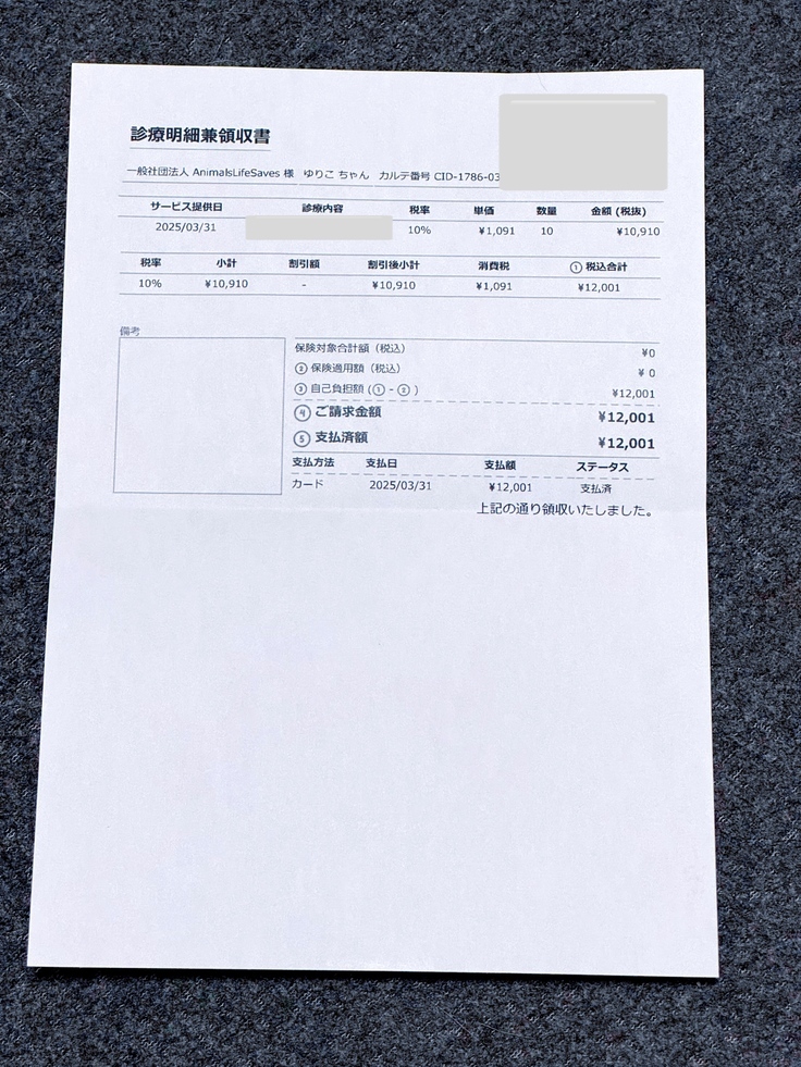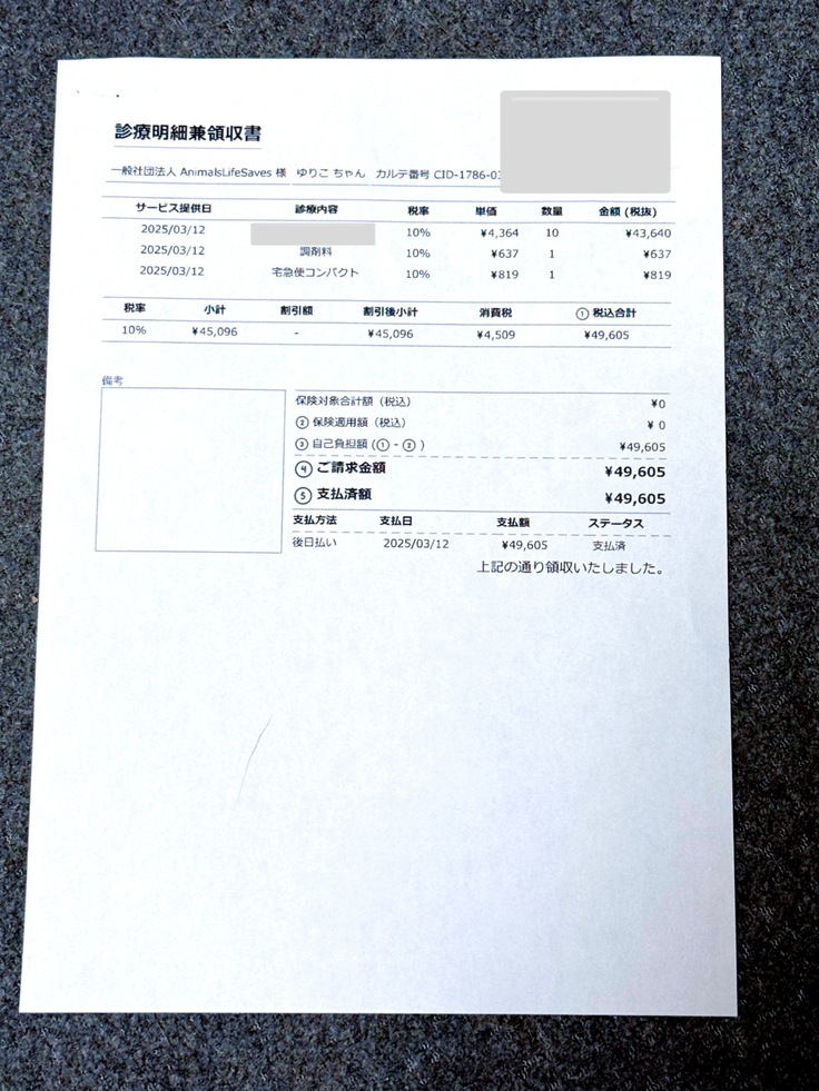 ページ上に掲載している診断書や診療明細書などの資料は全て動物病院から掲載の許諾を得ております。