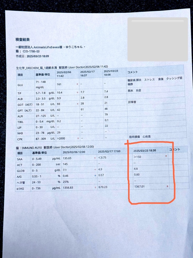 炎症マーカーが悪くなっているため(赤枠部分の所)