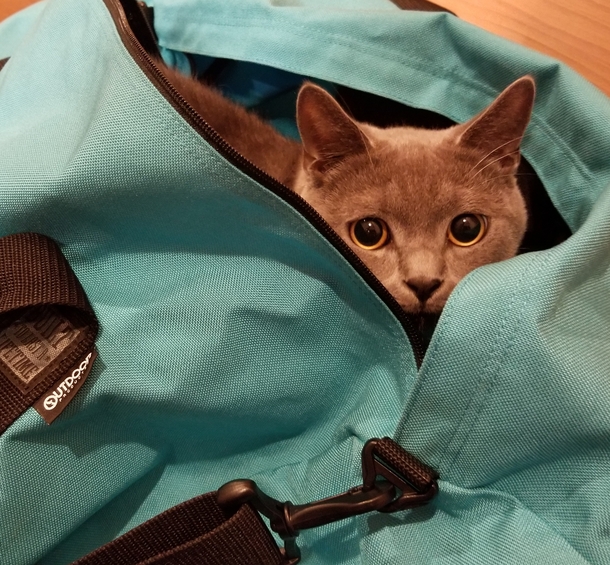 先日、弟が宿泊学習で使用したボストンバッグにピョンと入ったミシェルのお気に入り写真です✨