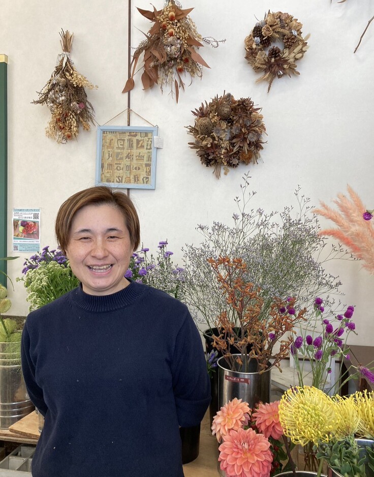 TPOに応じて、お花の種類やフラワーアレンジに気さくに相談にのって下さる店主の小澤様。笑顔もとってもステキです!!