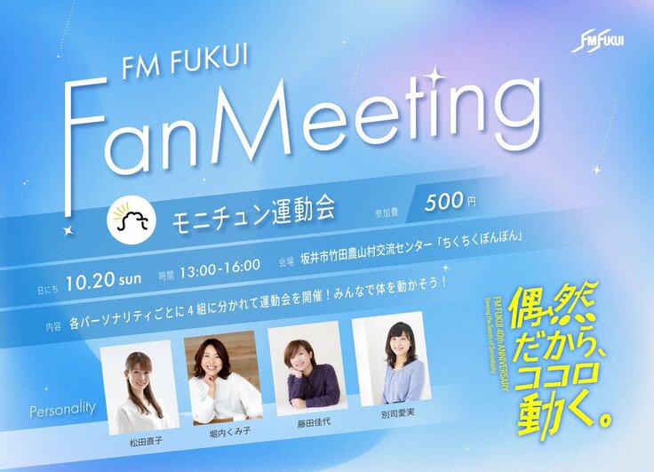 10月20日(土) に坂井市竹田農山村交流センター ちくちくぼんぼん 体育館で開催する