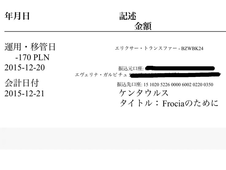 ここまでのご支援はポーランドのNPOケンタウルス財団へ、プロジェクト終了後速やかに送金いたします。