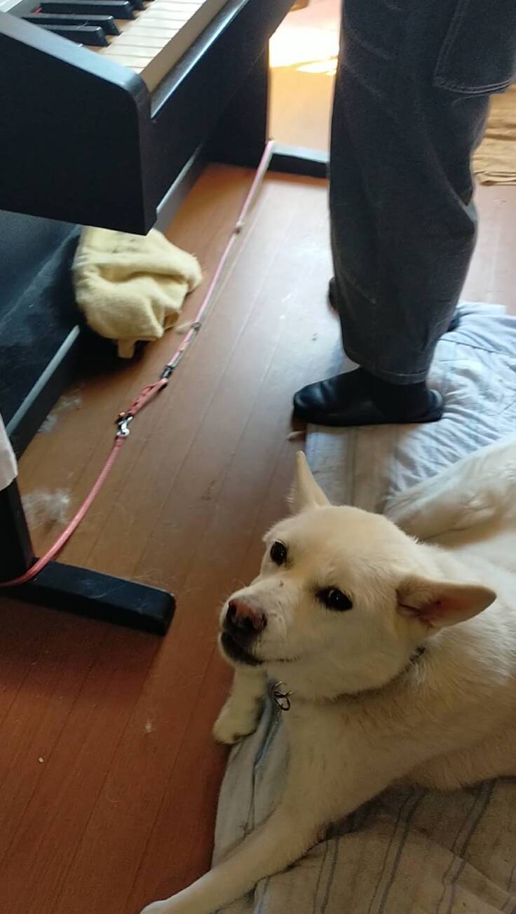 ピアノの周囲に来てピアノの音色を聞きながら寝るワンコたちを見ると音楽のもつ癒しの力を感じました。そしてピアノを弾く私たちは近くで寝ているワンコたちの顔をみて癒されていました。