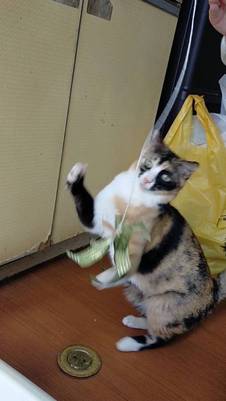 ↓猫じゃらしで遊ぶ「モネ」のコマ送り