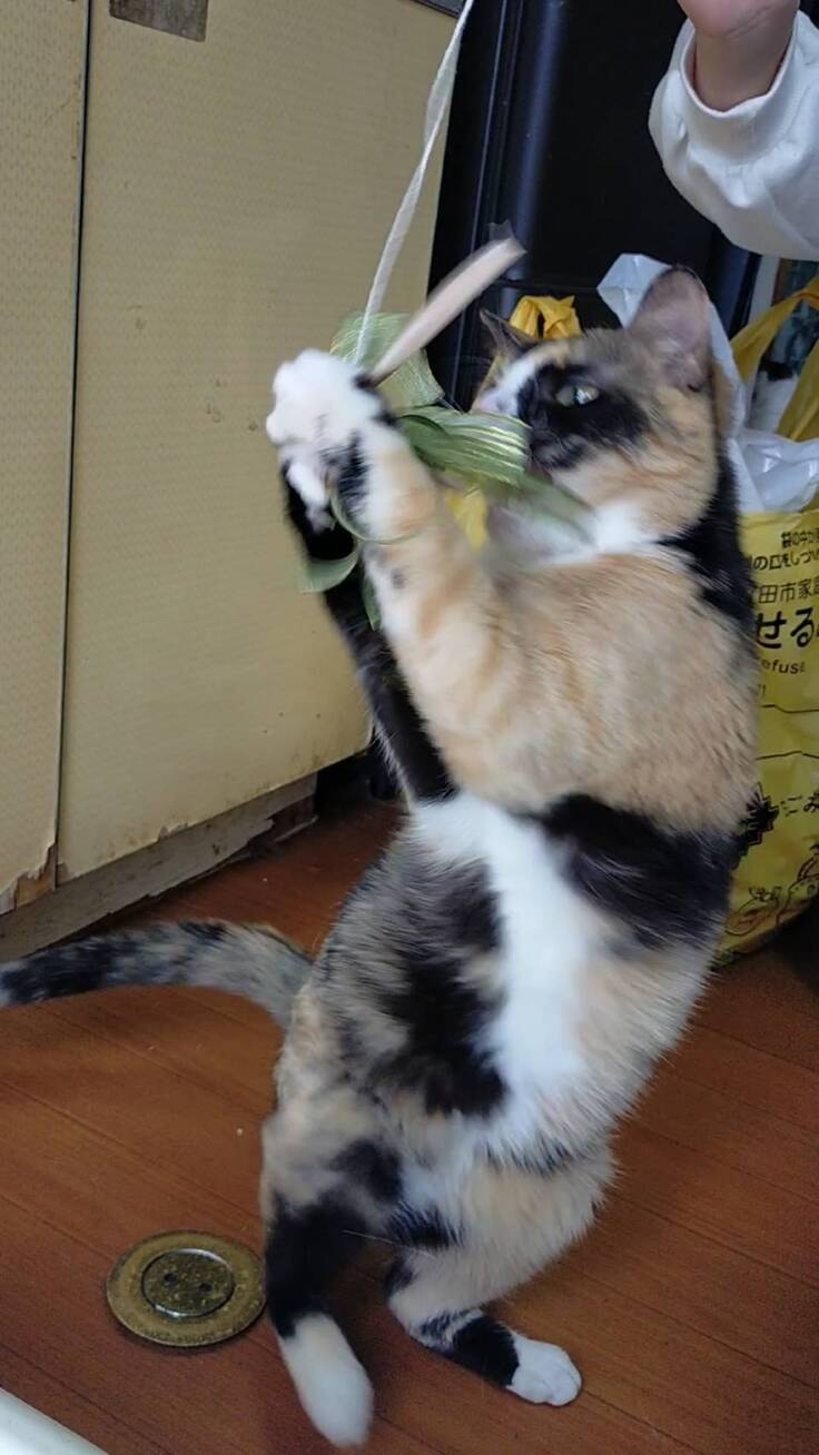 猫じゃらしのコツは猫よりも夢中になって猫じゃらしを操ること。