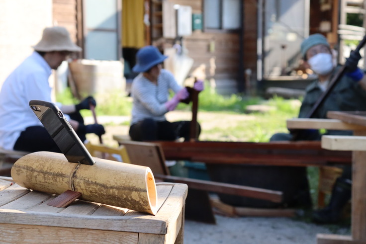 またバンブースピーカーに関しては、スマートフォンを竹筒の中に差し込むことでマイクから流れる音を増幅させてくれるアイテムです。竹の空洞を活かした単純な構造ですが、ちゃんと大きく響きます。
