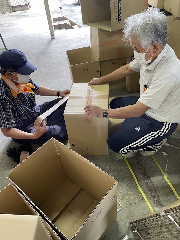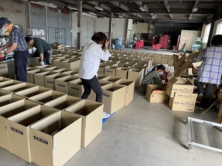 ②みんなで作ろう会(志波環江代表)を通じて佐賀学園の学生に対して50セットの食品セット・学用品セットを提供しました。