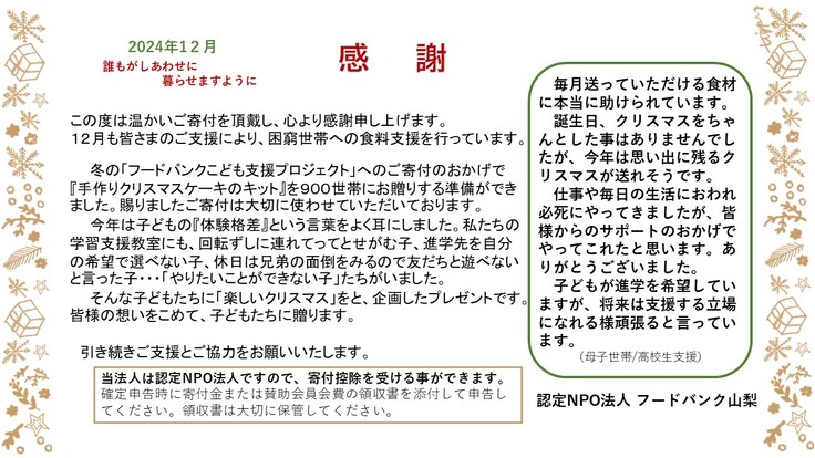 12月の寄付者さまへお礼のお手紙