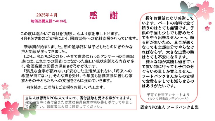 フードバンク山梨では2025年度も、困窮世帯に暮らす子どもたちのために