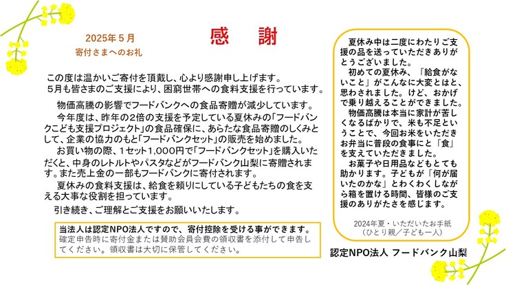 また、高騰する梱包資材や送料のためのご寄付の皆様へお願いしてまいりました。