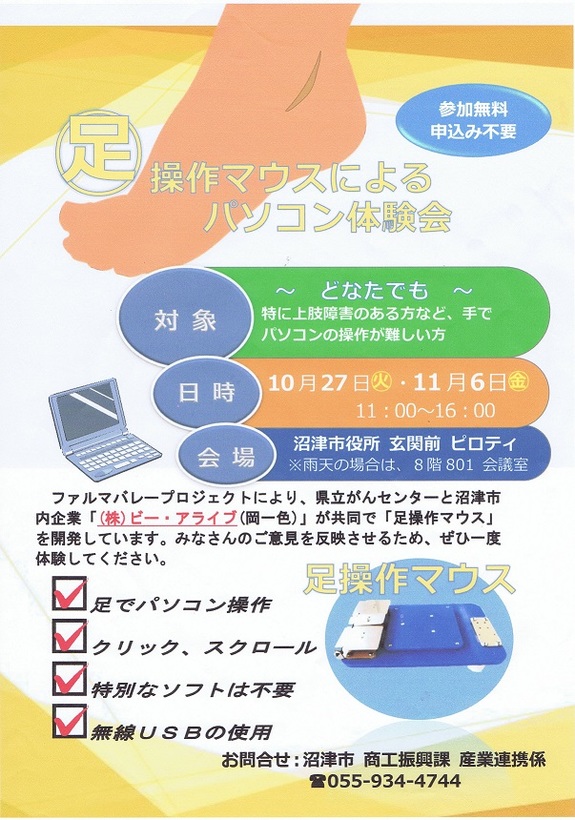 静岡県東部地区の方をはじめ多くの方に体験してもらいたいと思います。