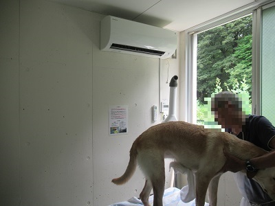 この季節は訓練犬達もボランティアさんもエアコンは必須アイテムです。新しくなって空調能力も