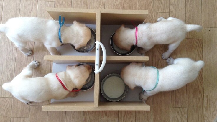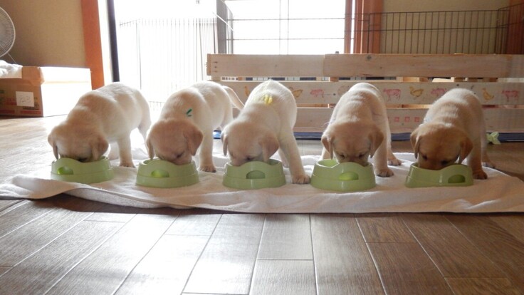 例えば、アレルギー体質や体調の変化などに合わせて、市販のフードではなく異なる飼料を使用したフードを用意し、健康な盲導犬の育成をしています。