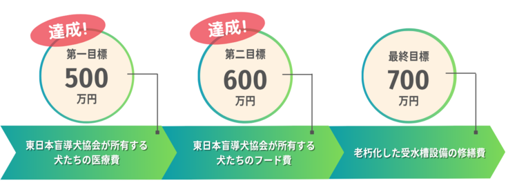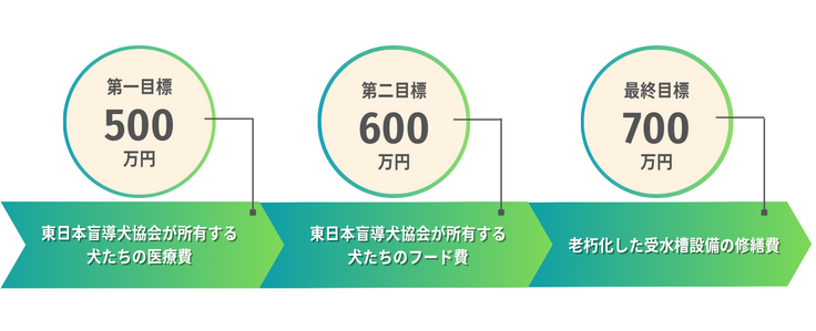 公益財団法人東日本盲導犬協会が所有する犬たちの医療費、フード代、および老朽化した受水槽の設備の入替に使用いたします。