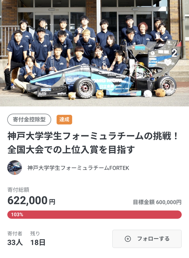 こんにちは!神戸大学学生フォーミュラチームFORTEKの三島です!