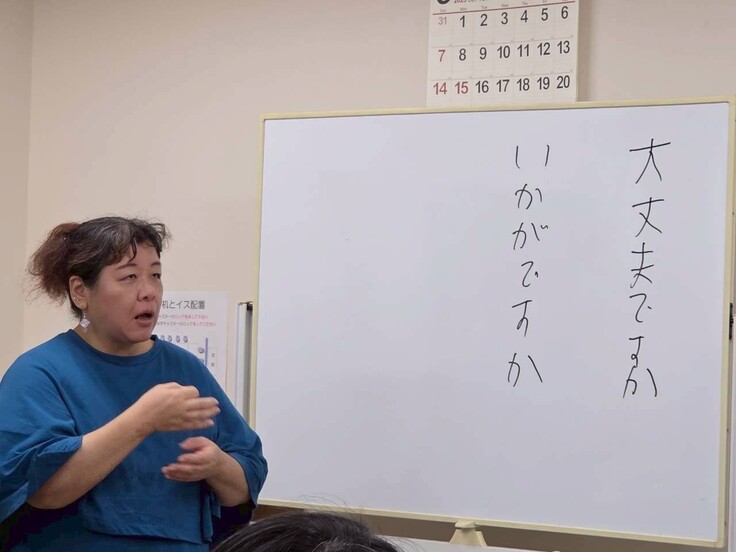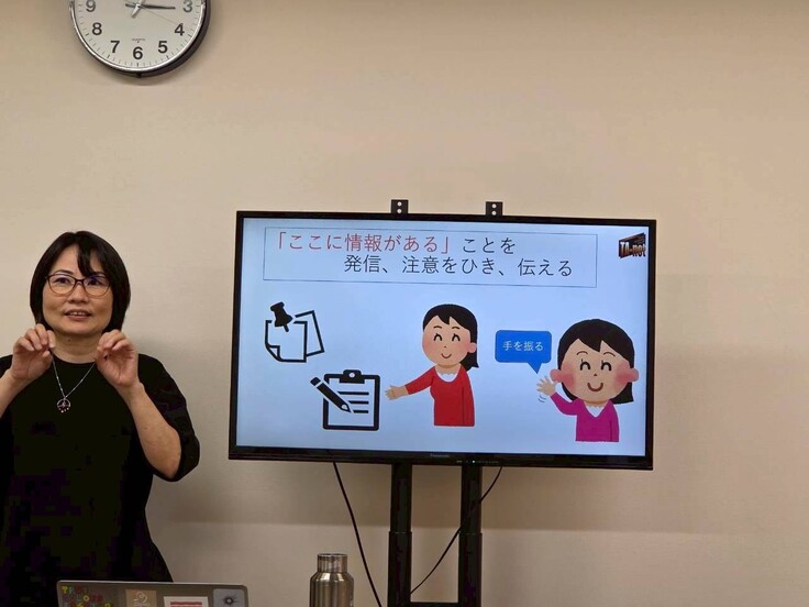 講習では聴覚障害がどういうものかを説明していただいたうえで聴覚障害の方とのコミュニケーションの取り方、そして実際に劇場にいらしてくださった際に受付でどのように対応するかのロールプレイを行い皆で改善点等を話合いました。