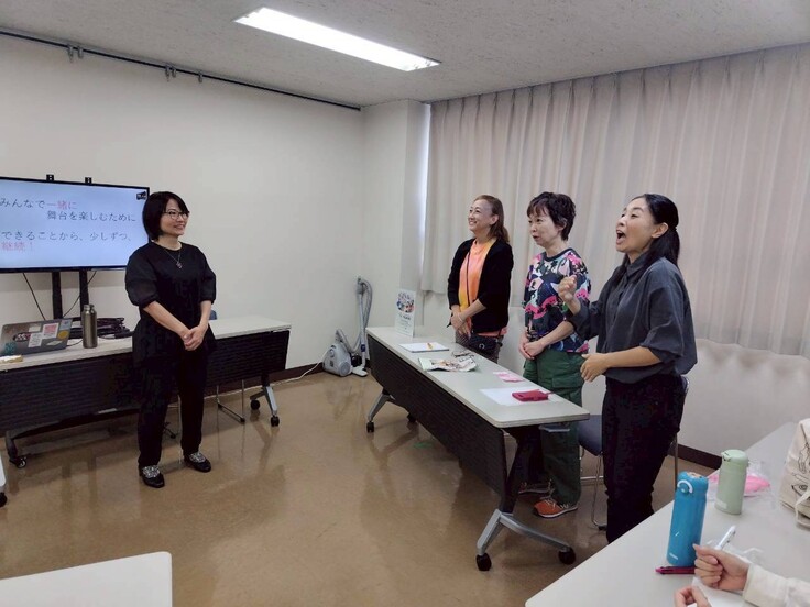 9月30日に今回の公演で観劇サポートを担当してくれる武藤さんと可兒さん主導のもと特定非営利活動法人シアター・アクセシビリティ・ネットワーク(TA-net)の「廣川麻子」さんと「石川絵里」さんをお迎えして「サポート講習会」を行いました。