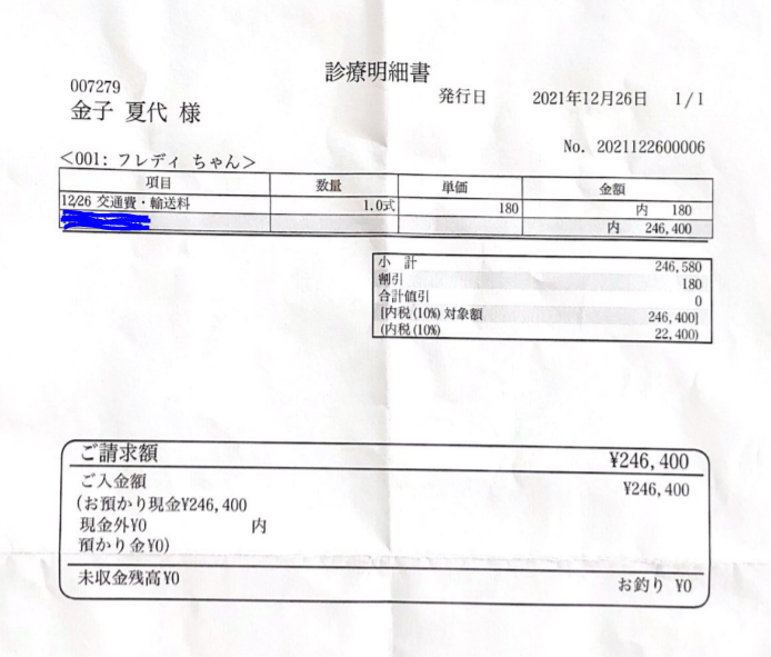 また、お医者様の触診では腹水も少し残っているとのこと。見た目元気そうなので