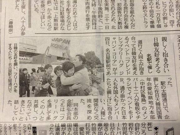 その前に名古屋駅前で在日青年会のみなさんと日韓友好フリーハグを行いました。