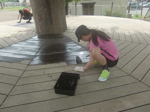 旭幼稚園でのウッドデッキの塗装のボランティアもしました。
