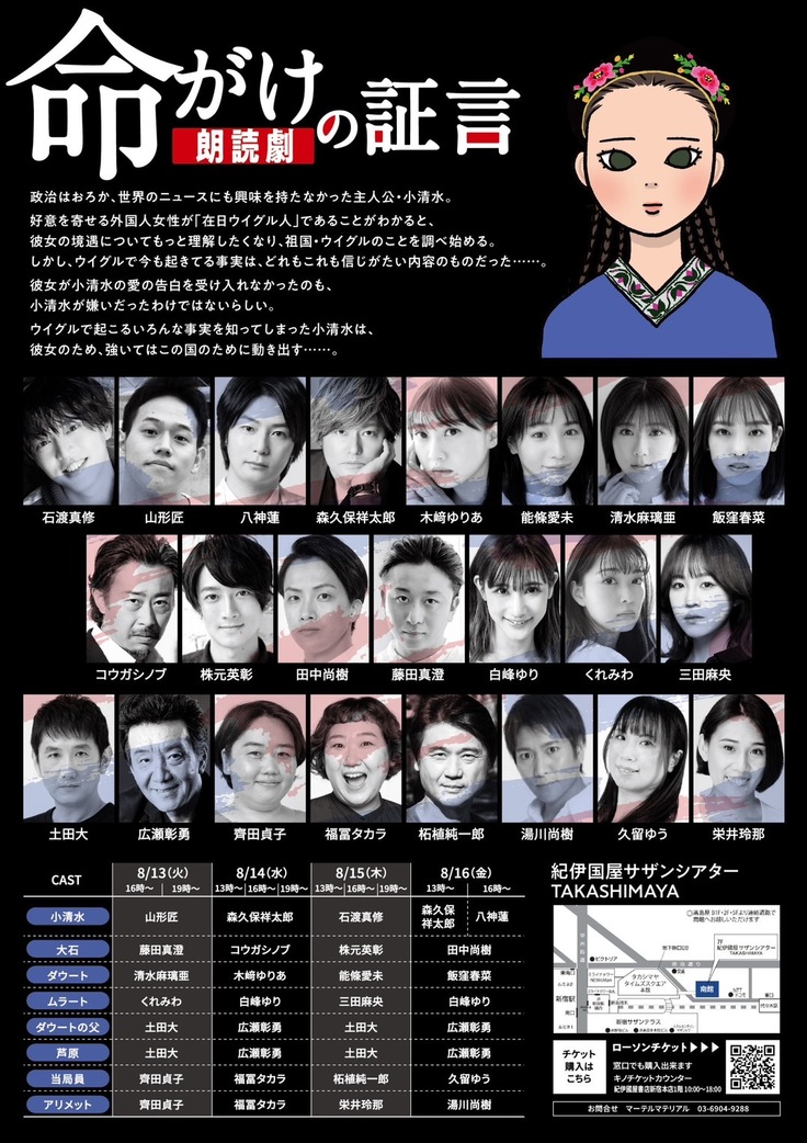 8月13日から新宿紀伊國屋サザンシアターでウイグル強制収容所の朗読劇が行われます!!!