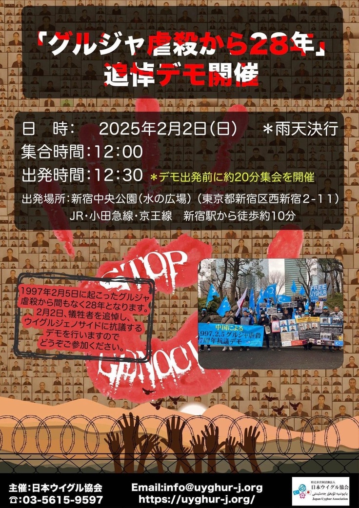 住所をネット経由で送りたくないなーって方は、2月2日(日)に行われるグルジャ虐殺から28年の追悼デモでお会いしましょう。紙に住所書いて渡して下さい。