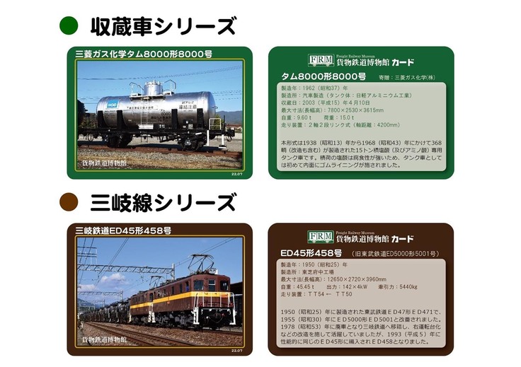 三岐線でご来館の方に「貨物鉄道博物館カード」を配布しております。普通乗車券でお越しの方は丹生川駅で引換証をお受け取りください。今月の図案は以下です。