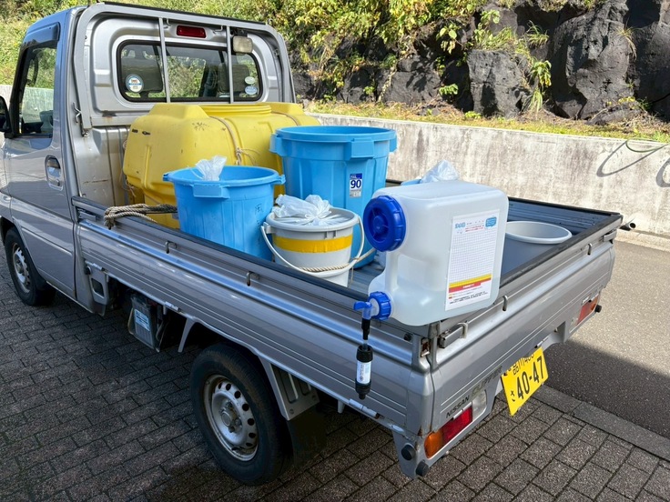 午前中は民宿従業員からの聞き取りから老人ホームが断水により物資が不足している状況確認し携 行した支援物資を施設にき物資の寄贈及び被災状況、支援要望等を聞き取り 、午後は島内の主要道路の被災状況をレンタカーにより確認