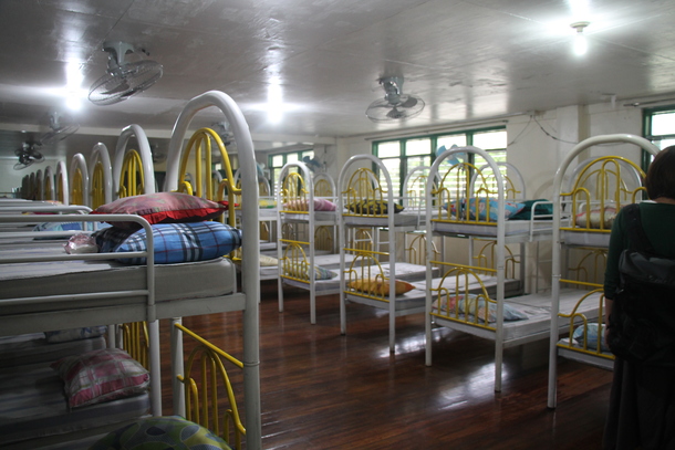 さて、フィリピンの盲学校の寮はと言いますと、スペースの関係上各自の部屋などはなく、男女だけ分かれています。各部屋35人以上、まるで夏期学校などの時に泊まる宿泊施設のように、2段ベッドだけが所狭しと並んでいます。机など置く場所も無く、寮はとにかく宿泊するための場所となっているのです。