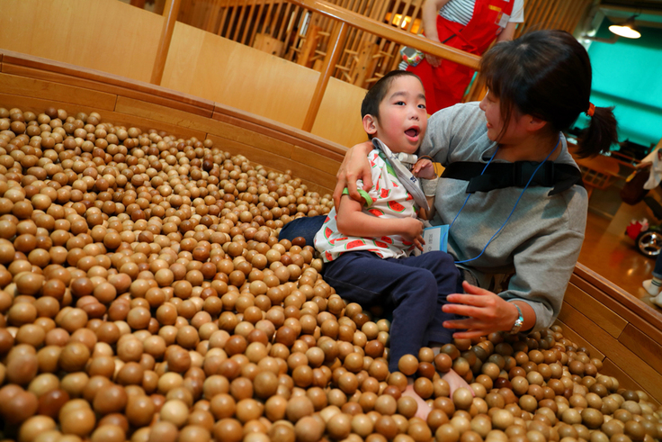 刻印されたタマゴは、福岡おもちゃ美術館に設置される「タマゴプール」のなかに入れられ、入館者たちに木のぬくもりを伝えてくれます。