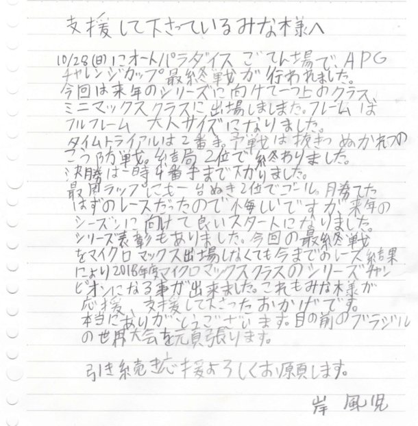 APG challengecup MINI MAXクラス参戦・直筆報告です!