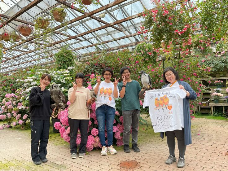 富士花鳥園は怒涛のゴールデンウィークが過ぎ、梅雨の次期に入って一段落しています。先週6月6日-7日、クワバタオハラのクワバタリエさんがスタッフやファンの方々を連れて富士花鳥園にご来園下さいました!クワバタさんは富士花鳥園の復活Tシャツをとても気に入ってくださっていて、何度も着てYouTubeのバタやんちゃんねるに登場して下さっています。洗いざらしてプリントが薄れてきてしまったインコTシャツを再度お買い求めに、ファンを引き連れて、しかもCMを作っちゃおう、というイベントまで開催して下さいました。
