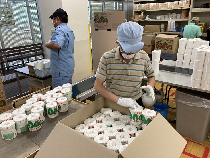 トイレットペーパーの売上から必要経費を引き、利益をすべて利用者様の工賃として支給しています。