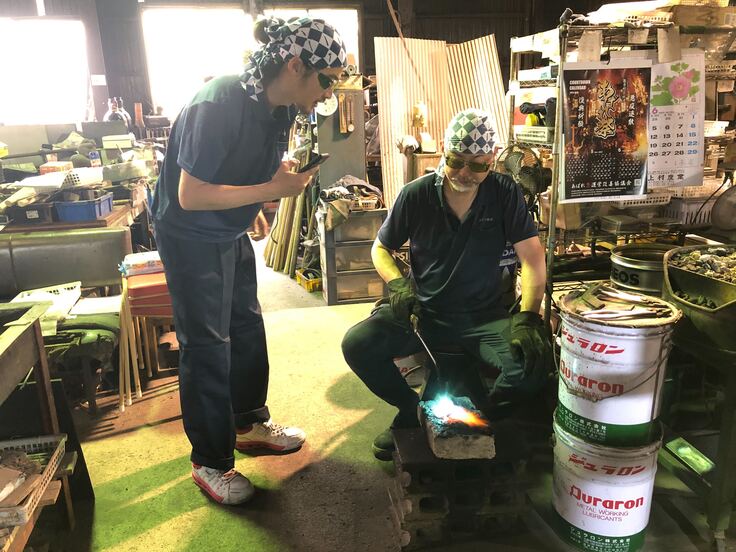 しかしながら、震災で住まい探しが難航しており、一時的に工場の休憩室に仮住まいしつつの家探しとなっています。早く新しい生活に慣れ、包丁の鍛造に専念できるよう、私たち全員で支えていきたいと思います。