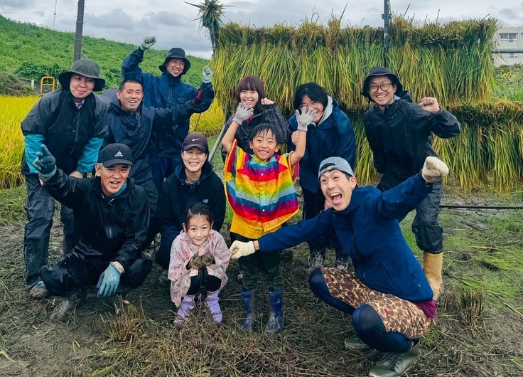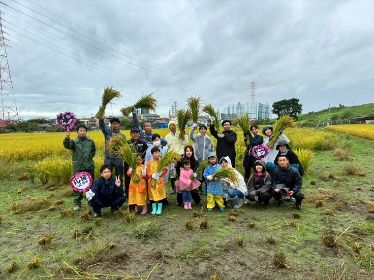 あいにくの雨模様となりましたが、子どもから大人まで多くの参加者が集まり、にぎやかに“手刈り”での収穫を楽しみました。