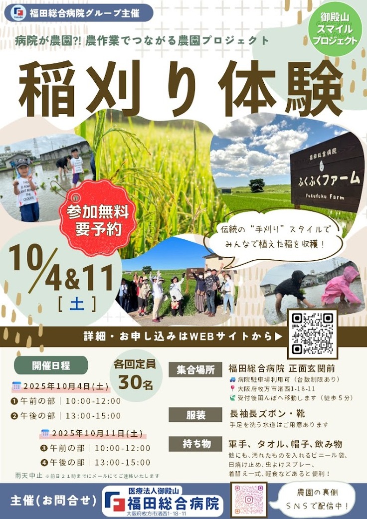 10月4日(土)、福田総合病院が運営する地域交流の場、「ふくふくファーム」で稲刈り体験イベントを開催しました!