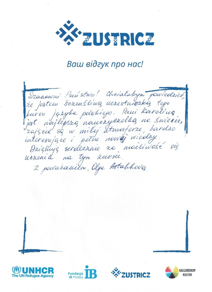 私はこのポーランド語コースを受けることが出来る、とても幸せな受講生であることを、みなさんにお伝えしたいです。