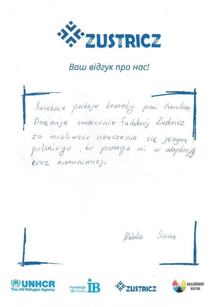 このコースは、私がポーランドに適応するため、そしてコミュニケーションを取るための助けとなってくれています。