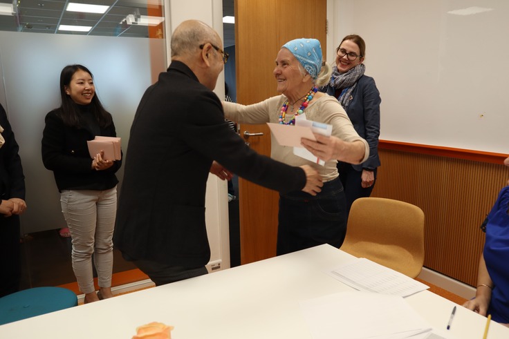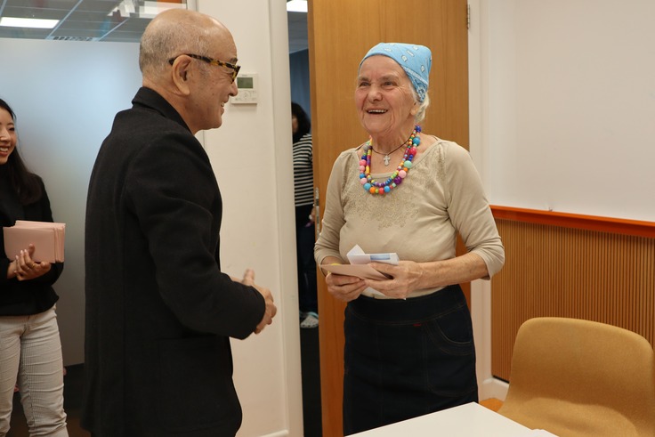 福田会本部がクラクフ市シェルターを訪問し、福田会理事長より避難民の方々へ冬服購入用の商品券配布を行いました。