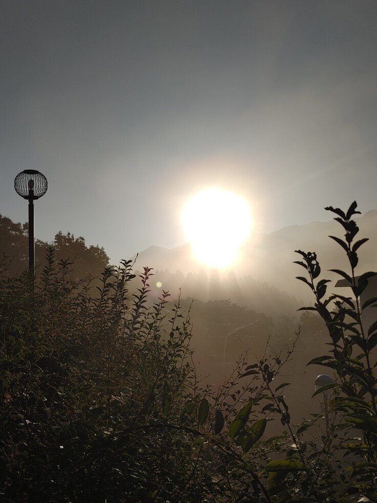 朝の清々しい空気ときれいな朝日を拝み今日の活動。