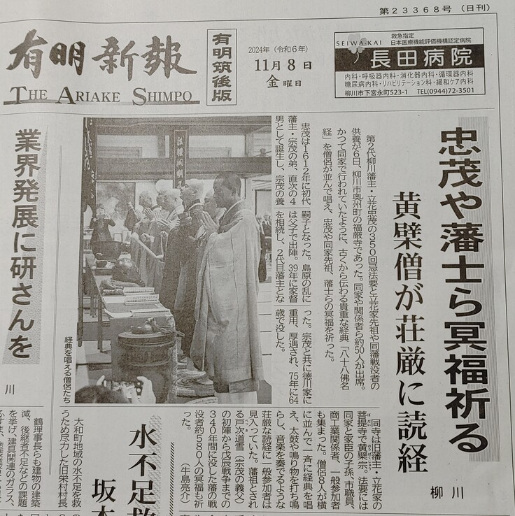 今回の立花忠茂公350回忌、立花家先祖供養、旧柳川藩戦没者供養会でも大変お世話になりました!