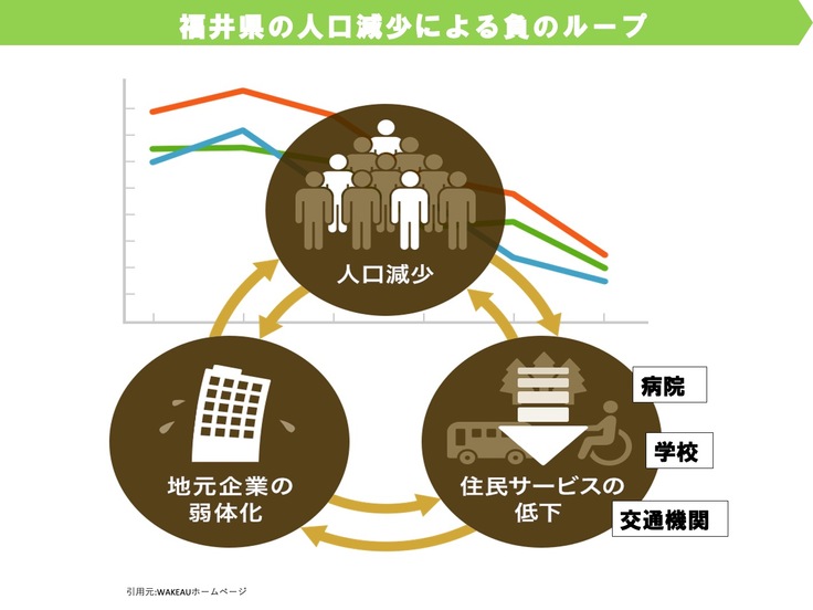 ①福井県からの人材流出による人材不足や人口減少