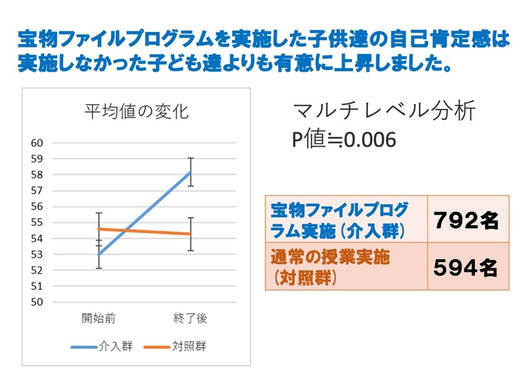 ・参加した子ども達の自己肯定感が向上して、不登校やいじめが減少する。