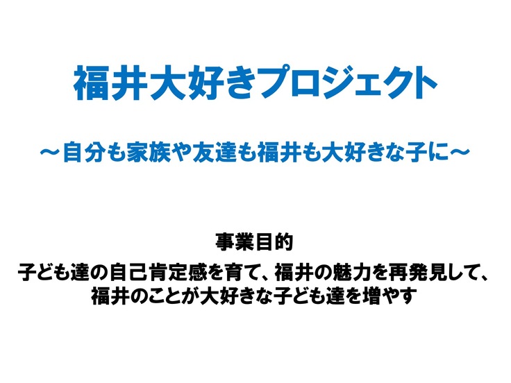 福井が大好きな子どもたちを育てることが最も大切なことだと考えて、本プロジェクトを計画しました。