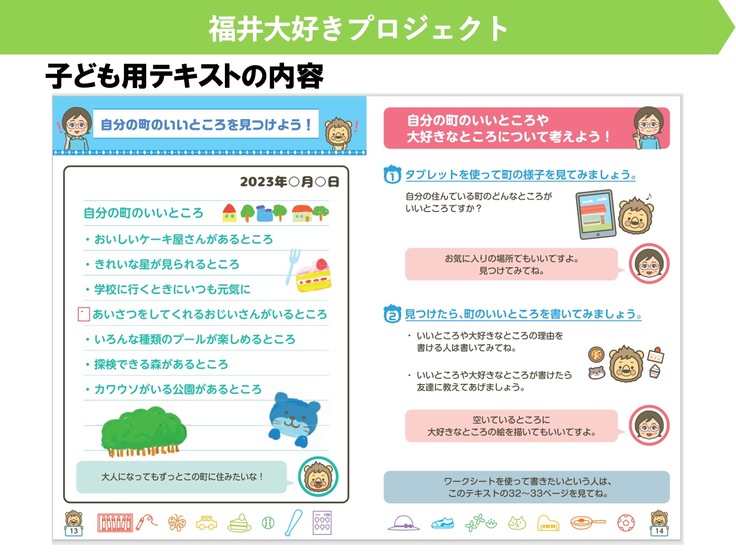・県内の全小学生に小冊子を配ることで、改めて福井の良いところに気づくとともに、自分の町の良いところを見つけようとする気持ちを高めることができる。