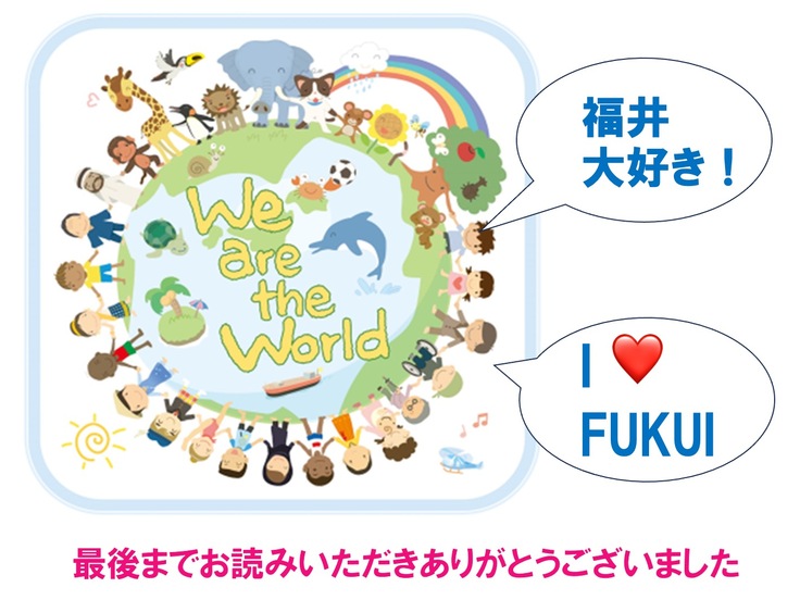 子ども達には自分のことも家族や友達のことも大好きになって、福井のことも大好きなって、幸せな人生を送ってほしいと願ってきました。